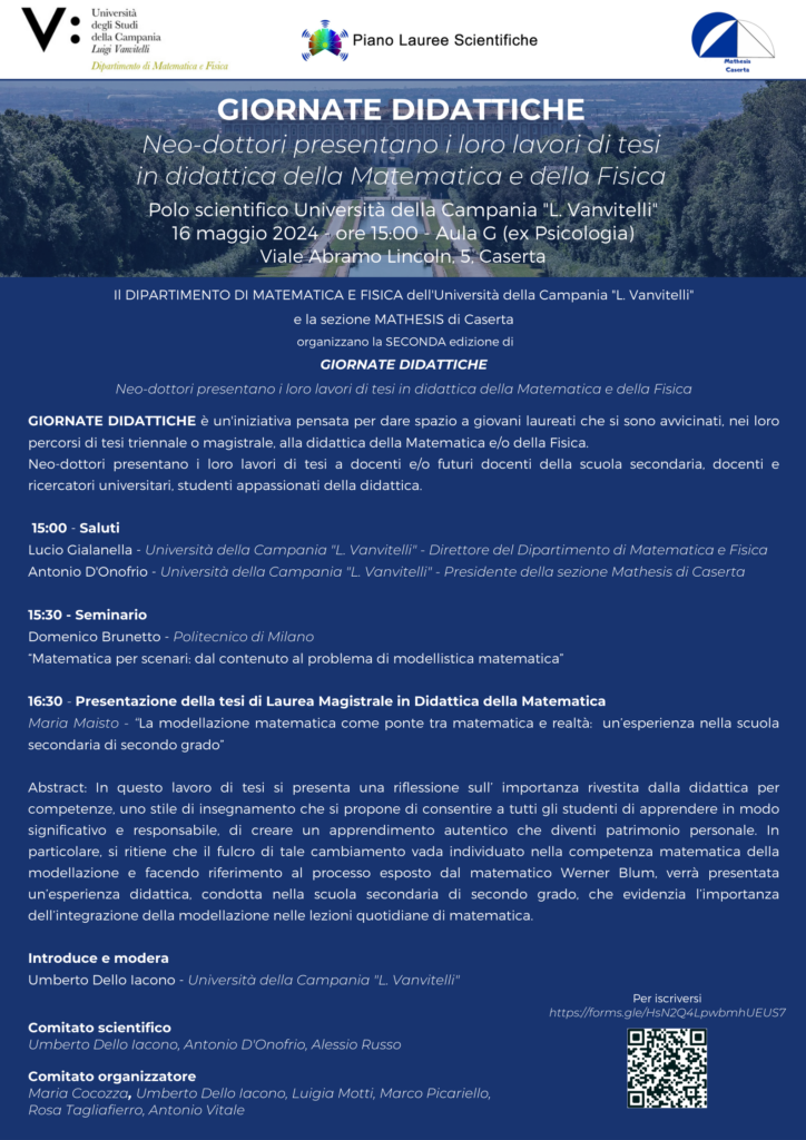 Il Dipartimento di Matematica e Fisica dell’Unicampania degli Studi della Campania “Luigi Vanvitelli” e la sezione Mathesis di Caserta organizzano la SECONDA EDIZIONE di GIORNATE DIDATTICHE.